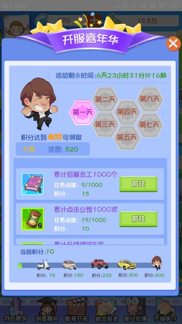 想踏足演艺圈吗?那就先来模拟一下你将会如何经营自己的演艺事业吧。《疯狂演艺圈》是一款非常好玩的模拟经营类手游,游戏中玩家将会扮演一名有着明星梦想的年轻人,你将会在这里开始你的演艺生涯,你将会白手起家,招募艺人来为你工作,将公司发展壮大,感兴趣的玩家快来下载体验吧。