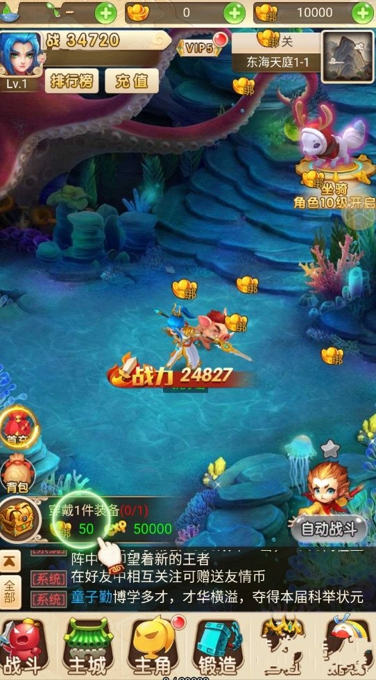 这是一款以神话西游为背景故事改编而成的回合养成类手游。独特的西游题材搭配上全新的韩流元素,配备顶级untiy3D引擎为玩家打造更加清新绚丽的画面风格,全新的人物角色设计别具匠心,并且酷炫十足的游戏背景音效让玩家身处奇幻绚丽的神话世界。策略性的养成和战力组合将会给你一场烧脑的挑战,在这里来享受全新的三界冒险。