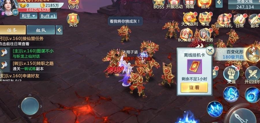 3、多种种类不同的世界大boss等待玩家们挑战,与小伙伴们组队进行击杀boss,会有各种类型的稀有装备掉落哦。