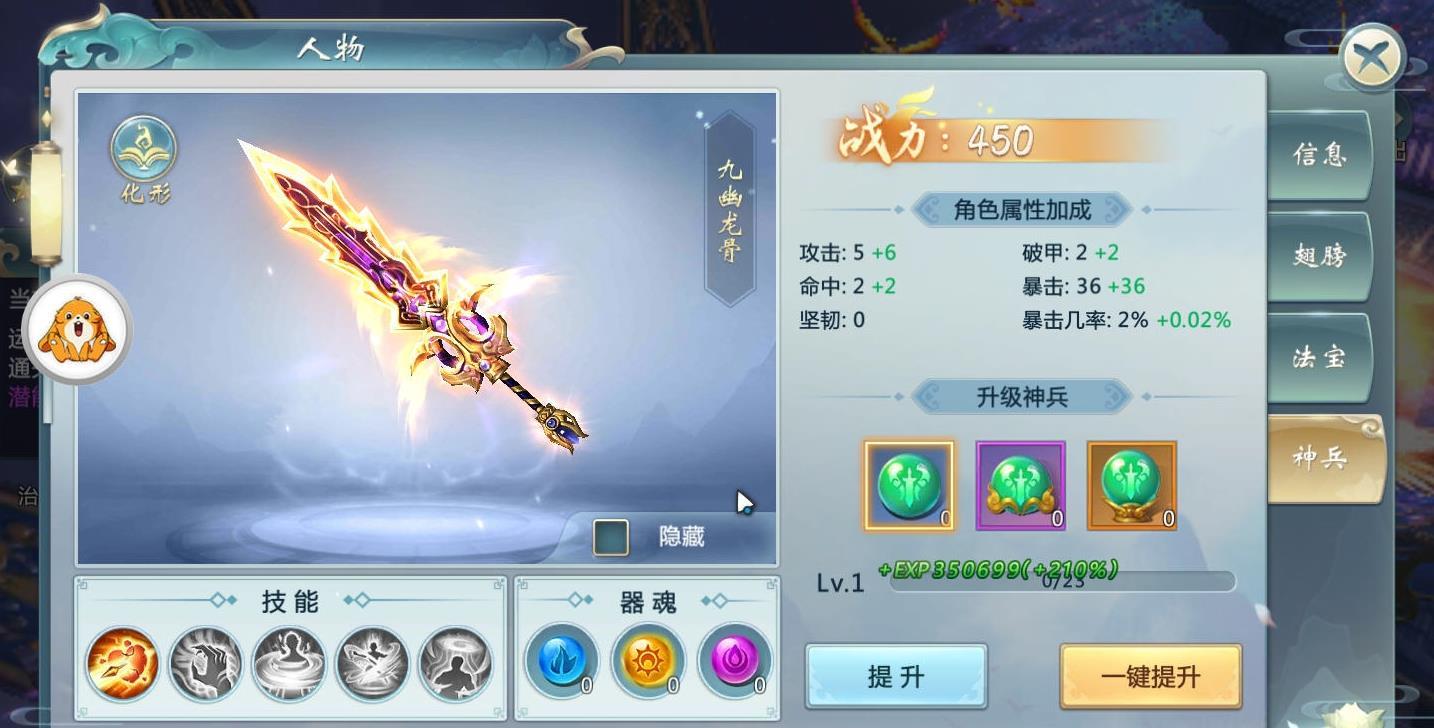 1、多种或俊逸或绝美的仙侠角色,每种仙侠角色都具有非同一般的属性能力,玩家可以选中自己满意的一位修仙。