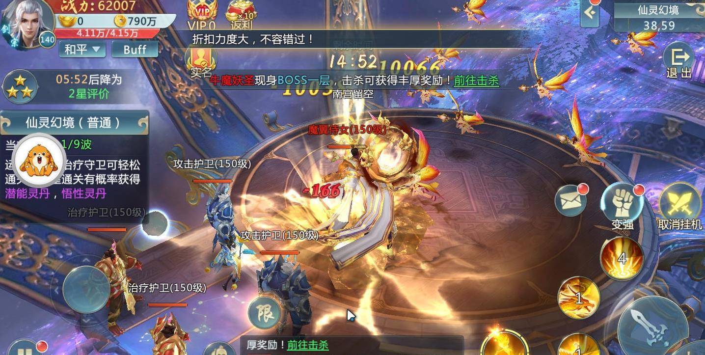 《荡剑青云》精美的画面场景,玩家在玄幻的仙侠天地中可以自由畅快的踏上刺激修仙之路,可以在竞技场中进行激情的pk,或者与世界boss进行惊心动魄的战斗,使用一定的实力进行杀死世界boss,精彩纷呈的战斗过程玩法,让玩家具有无与伦比的战斗快感。