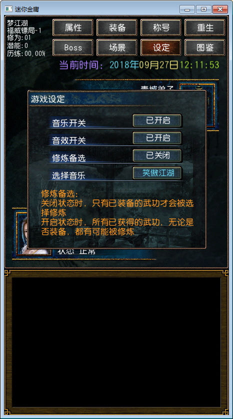 迷你金庸是款模拟武侠类游戏,游戏拥有多样化的挑战玩法,玩家可以在这个真实的金庸武侠江湖挑选自己喜欢的角色,进行拜师学艺。完成系统给出的一系列任务就可以获得等级风提升,玩家等级每升级一层,功力都会大增!喜欢就来下载试玩吧!
