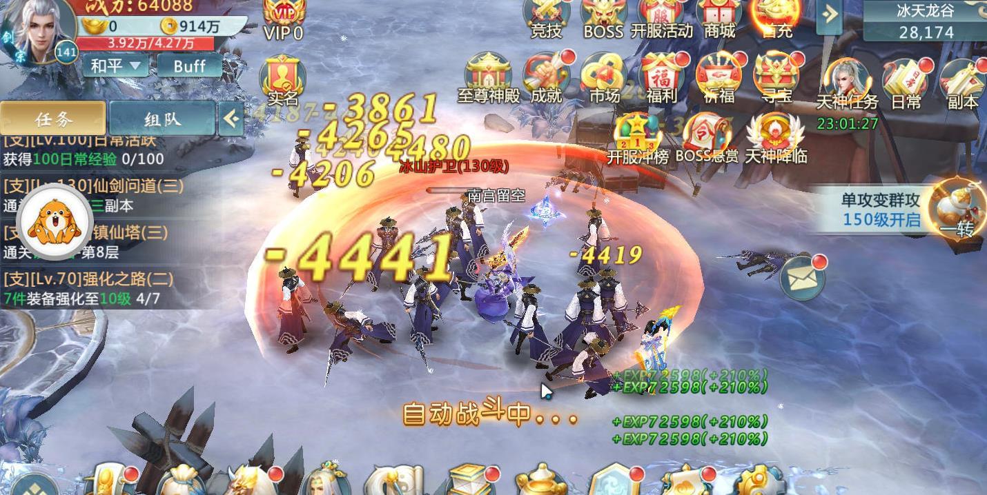 2、百战神途炸裂对决,仙缘征战闯荡历险,人物升级到一定等级之后解锁新的玩法;