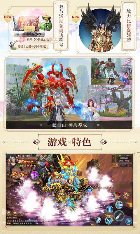 3:酷炫的时装霸气的称号和坐骑以及Q萌的宠物,让玩家自行打造角色的外观形象,自由养成玩法让你欲罢不能。