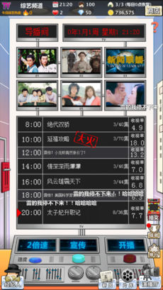 1、玩家将成为游戏娱乐公司的所有者,开始各种投资制作电视剧