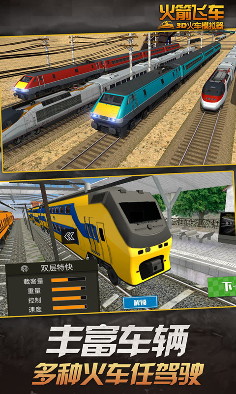 《火箭飞车》是一款休闲益智类游戏。玩家将扮演一个真正的火车铁路司机,让我们开车,并成为这个现实的火车模拟器游戏中最好的火车司机。玩家可享受在铁路线上的列车快感,从一个站台到另一个站台,在最短的时间内将乘客运送到目的地。