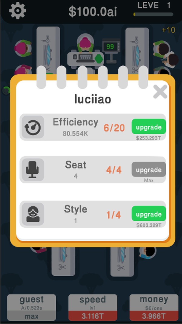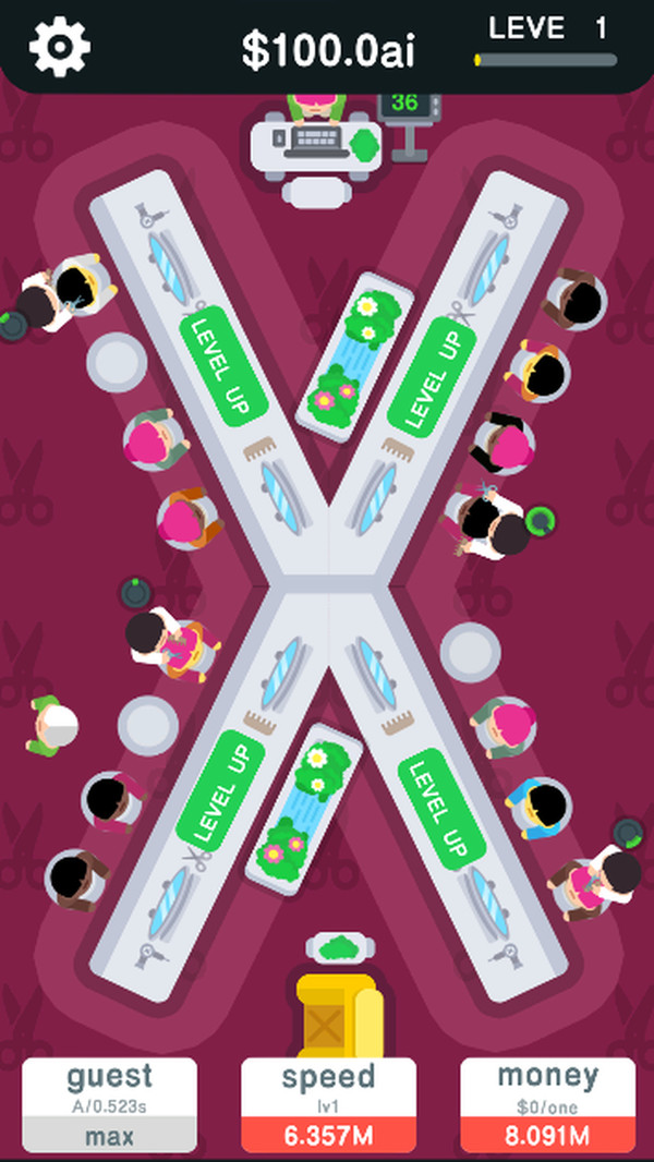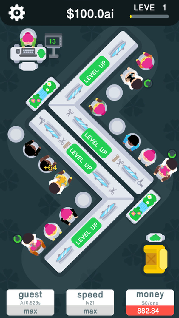 闲置发廊是一款有趣的发廊模拟经营游戏。玩家在游戏中经营着一家发廊,需要雇佣理发师,购买工具材料,不断的将理发的生意做大,引领时尚潮流,收获更多金币,对你的发廊进行装修!