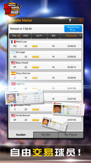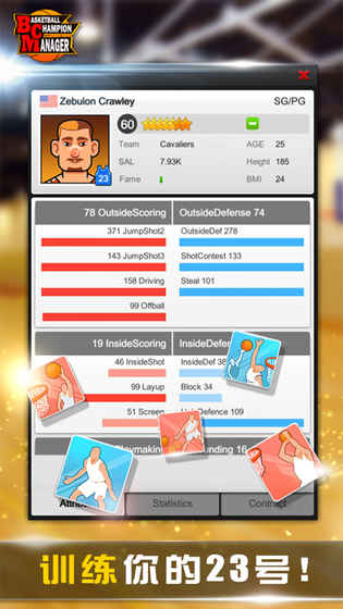 3、招募强大的明星球员,训练年轻球员,不断的问鼎冠军梦。