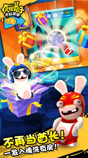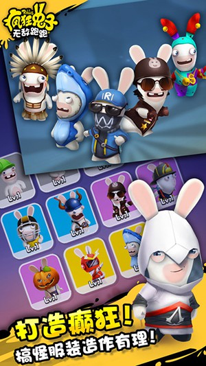 4、乔装打扮:让你的疯狂兔子穿上战衣,让它们独树一帜!穿上机车服、墨西哥摔角手服装、忍者服装、内衣队长服装以及更多服装开始赛跑。每种服装都可以为你提供能力和额外的技能。