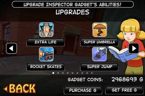 神探加杰特是一款老牌横板闯关游戏,与同名漫画故事背景相同,加杰特探长需要去拯救被Claw博士抓走的Penny,一路狂奔,会使用到各种和动画片里一样的道具。而现在这款《神探加杰特》(InspectorGadget)就以Gadget去拯救被Claw博士抓走的Penny为背景,让玩家体验到刺激的追逐乐趣;