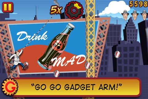 让Gadget利用火箭溜冰鞋、降落雨伞、超级跳跃和钩锁手臂,不断的避开各种障碍,去追踪抓走Penny的Claw博士。这些障碍从狂奔 而来的火车到空中的高压电线,从地上的香蕉皮到空中的飞鸟,甚至是Claw博士亲自过来向Gadget扔炸弹。保持不受到伤害,也不被香蕉皮飞鸟碰到,坚 持收集一段时间后Gadget的火箭溜冰鞋将会发挥威力,让Gadget的前进速度倍增。但是这样也会令Gadget躲避障碍变得更困难,因此要注意应对。