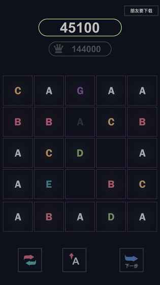 《合他个ABC》正如名字那样,是个字母合体游戏,跟2048不同的是,合体是通过点击空的格子,让它周围相同的字母过飞来合成更高的字母。并且会以半透明字母的形式提示下一步会在哪个格子里填充新的字母,所以每合一步都需要有周到的思考。这让此游戏有个副作用,就是让你在不知不觉中养成“考虑下一步”的好习惯。