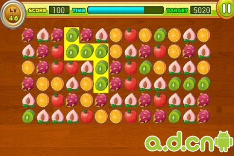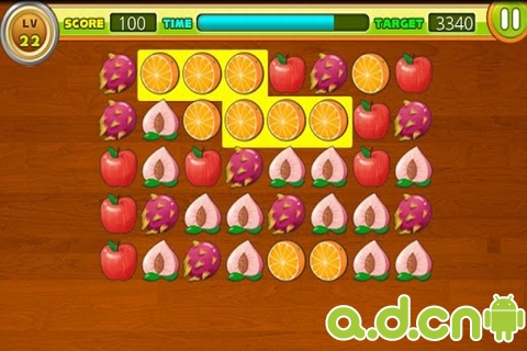 2、连接三个或更多相同的水果飞溅得分。