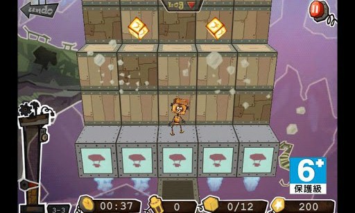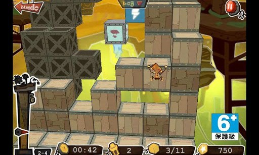 2、游戏操作:游戏是采用直接的触屏手势的控制方式,只要点击和机器人相邻的箱子,机器人就会爬上或者下降到这个箱子上。就这样的操作方式而言,算是简单易上手的类型,只需要花费一点时间就能够熟悉与掌握。并且游戏在一开始的时候还会有新手教学。