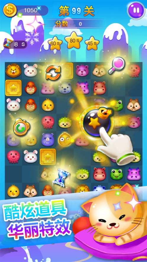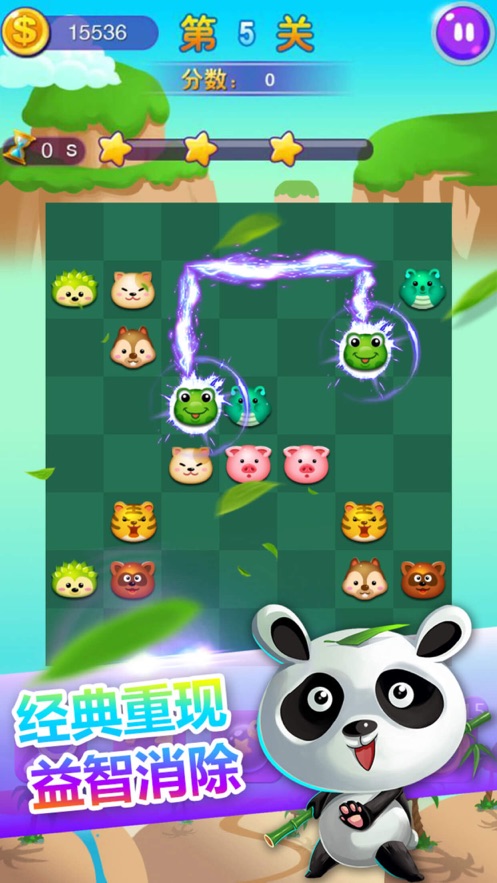 游戏界面精美,可爱的动物卡通形象看谁连接的更快吧。