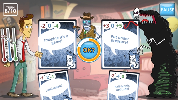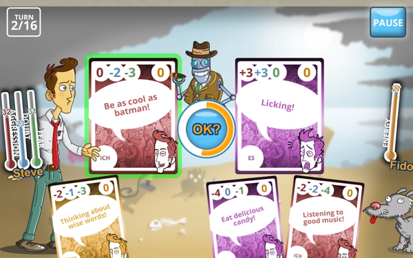 弗洛德机器人的玩法比较有意思,你要根据对手的话来决定接下来说什么,如果答错了你的消极情绪就会上涨。