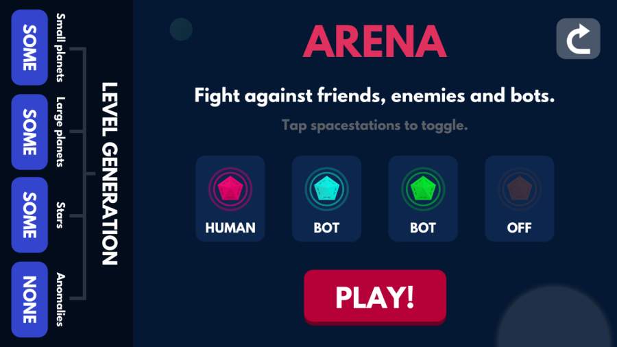 在竞技场模式下指挥你的空间站,轮流在恒星、行星和异常的重力范围内发射导弹。摧毁你的朋友或机器人。