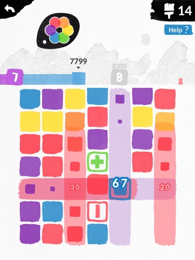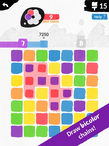 《清新色块》对固有的消除类游戏玩法进行了突破,不再是单种颜色的消除,而是将可以一同消除的颜色扩大到了两个。这样一来看似是降低了难度,其实难度不降反升,它削弱了消除类游戏对于反应能力的要求,反而增强了观察力和逻辑判断力。对于反应能力一般的玩家来说是一个福音,不需要再急急忙忙的找颜色消除了。