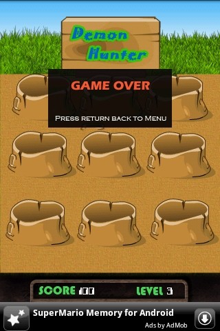 《打到恶魔》是一款休闲益智类的手机游戏。游戏的画面是很简单的卡通风格,玩法也很简单。如果你玩过打地鼠的话就一定会玩这个游戏,与打地鼠类似,恶魔钻出来,然后你打他就可以得分。适合在无聊等待的时候打发时间玩。