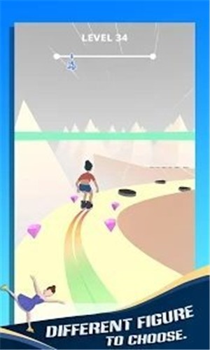 3、海量精心设计的赛道,不同难度的关卡,收集更多的金币,开始你的滑冰冒险;