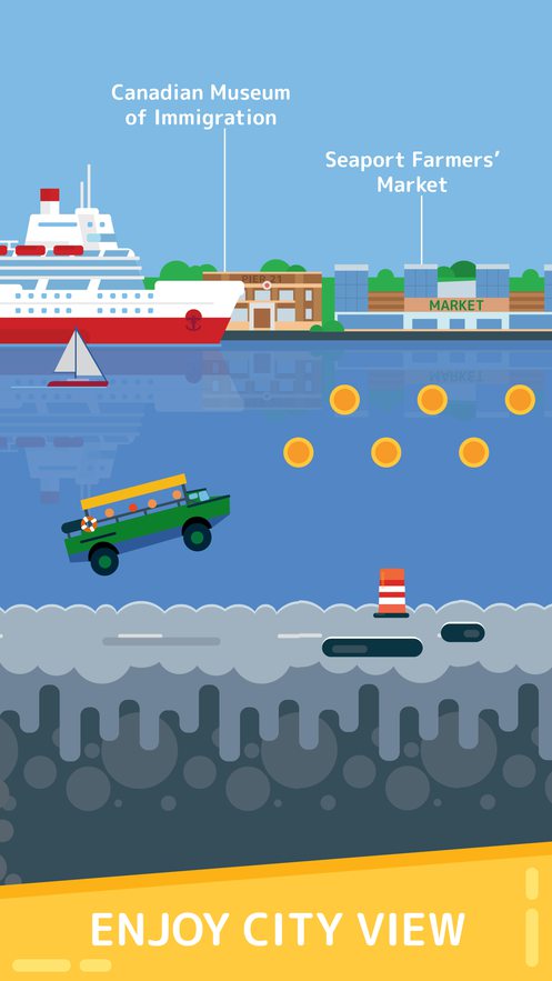 Halifax Awaits是一款趣味的水陆两栖车辆驾驶闯关游戏。玩家可以驾驶车辆在各式环境中展开冒险,探索不同的道路河流,欣赏沿岸的城市风光。