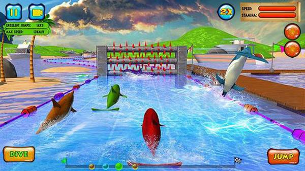 海豚比赛3D版是一款海洋动物模拟的趣味竞赛游戏。故事发生在充满机关道具的水上乐园世界之中,玩家在游戏中控制聪明的海豚进行闯关冒险,开启清凉的夏日竞赛。
