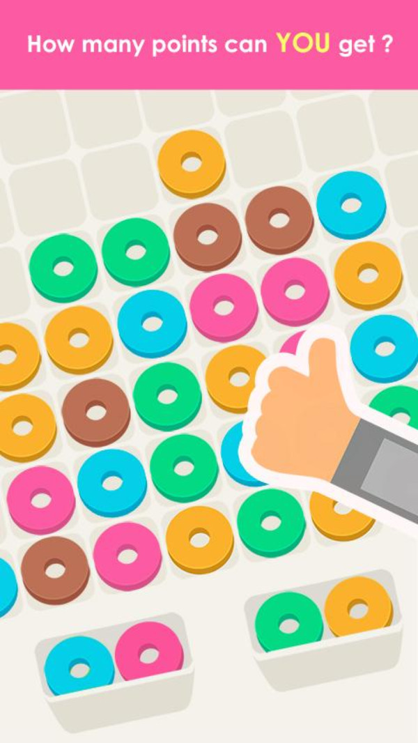 1、色彩丰富的甜甜圈,完成匹配,进行消除。
