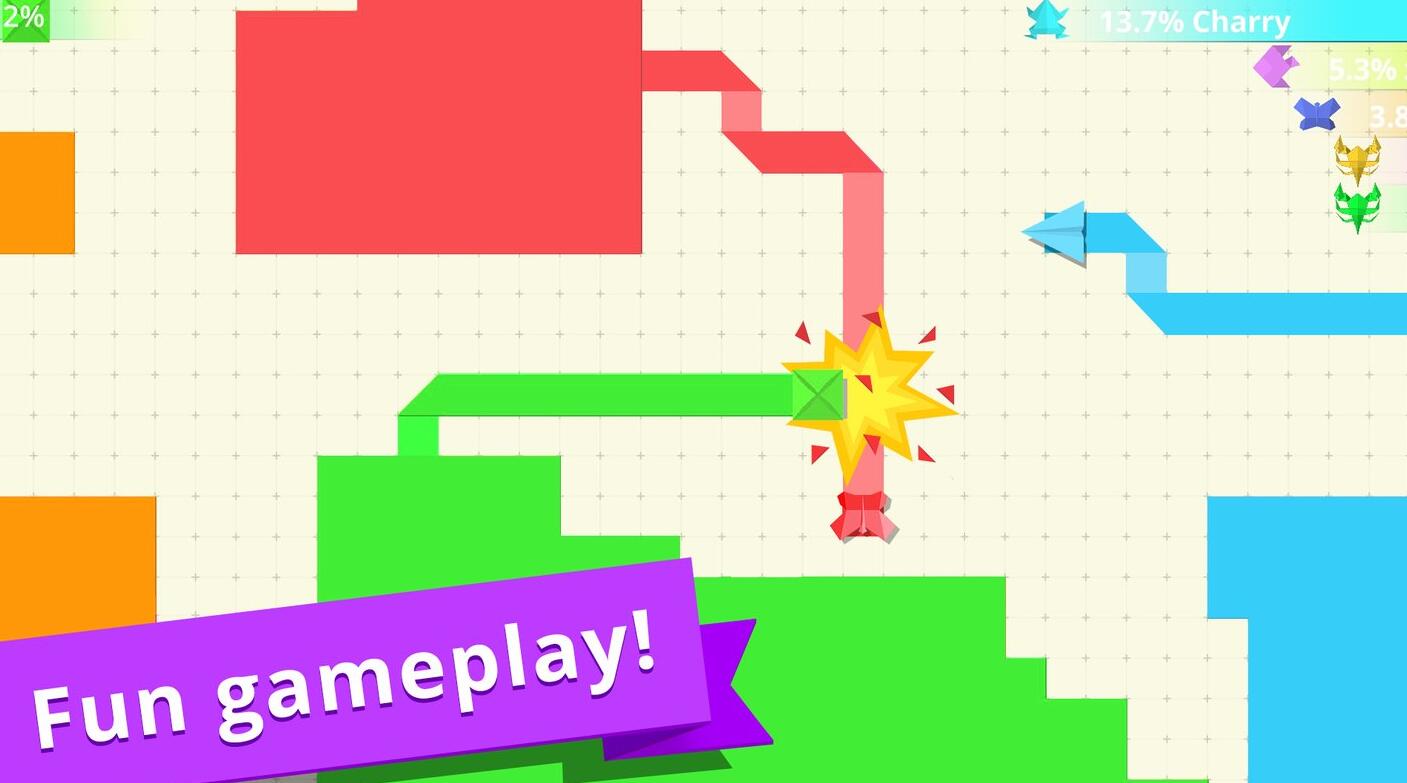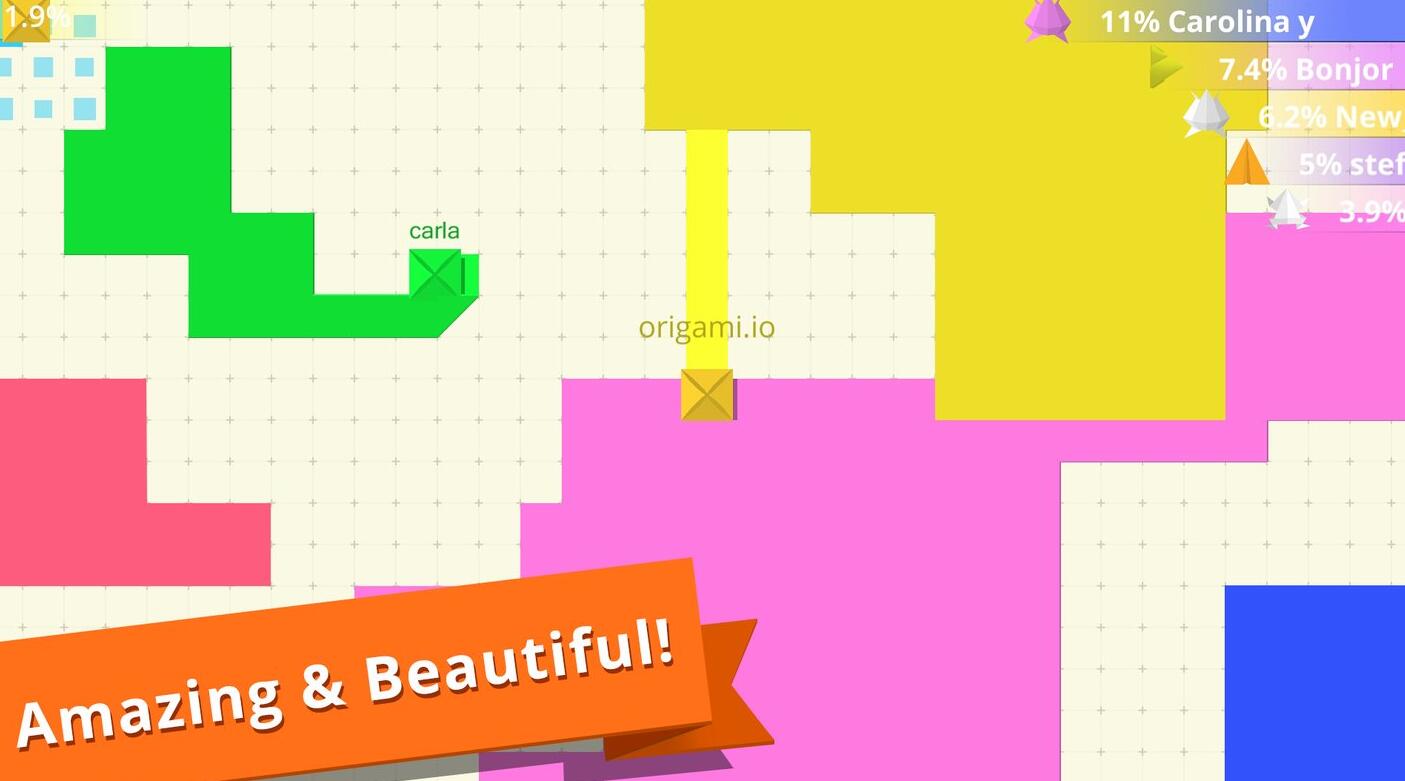 《折纸大作战 Origami.io》是一款有趣的休闲娱乐游戏。游戏在圈地玩法的基础上加入了令人耳目一新的折纸要素,并且玩家还可以自由选择超过9种不同的控制方式。运用你的智慧与策略与其他的折纸作战,不断的赢得胜利获取金币解锁更多的折纸吧!
