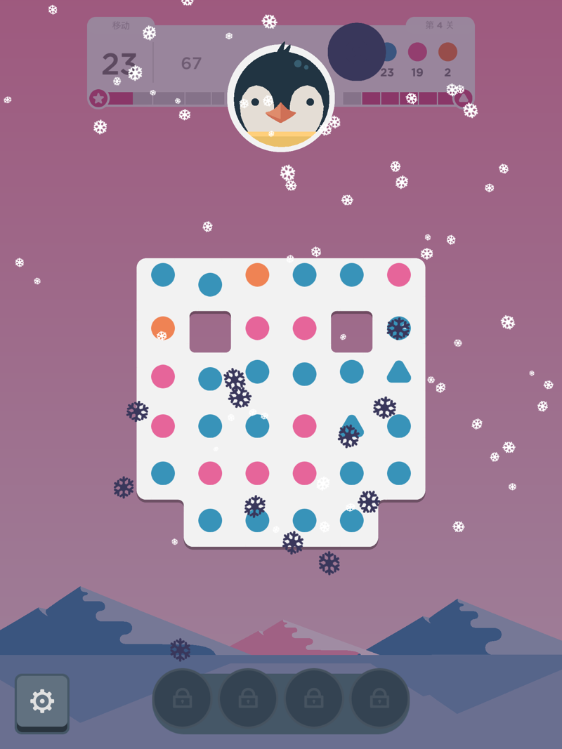 随着游戏的推进,玩家可以通过消除三角形方块来让小伙伴安丽塔积累能量,进而触发技能,该技能可以使某种颜色的全部点点消除,你甚至可以在挑战之前对安丽塔进行强化,加快其积累能量的速度。