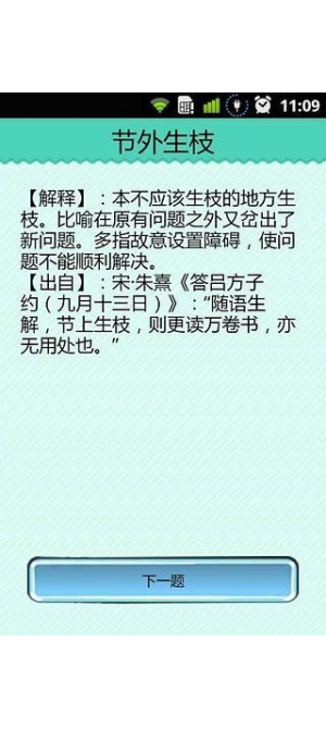 2、用心打造的的中文益智游戏,精美的图片+详细的解释,既可以打发时间,又能学习知识;
