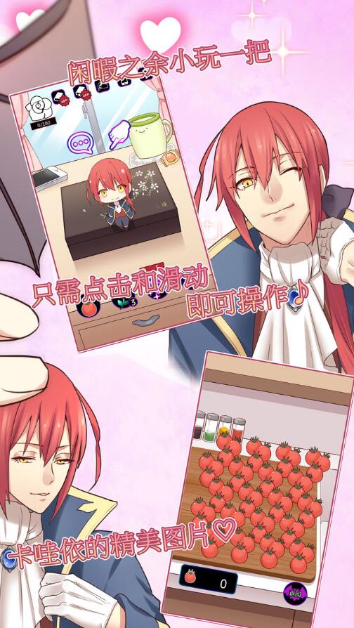 1、日系Q萌风格的恋爱手游,玩家可以送水果花朵给小吸血鬼进行互动,增加好感度,玩法简单。