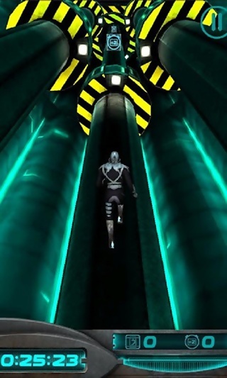 以科幻为背景的失重跑酷游戏,采用了竖版界面,通过简单的划指动作完成各种跨越动作。高品质的图形显示是游戏的一大亮点,游戏没有设置过多的模式和内容,点击PLAY即进入到闯关之中。