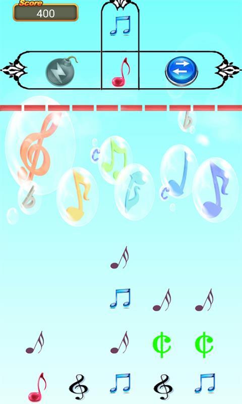 音符大爆炸带给玩家简单轻松的消除体验,以主流的八分音符为题材打造,充满了模型的玩法挑战,让你感受别样的游戏乐趣,挑战极限采用传统的玩法设计!一款非常有节奏感的益智类消除游戏,游戏的玩法看着有点像俄罗斯方块,游戏的音乐旋律非常的优美,只是听听音乐就会让你陶醉!当手指点击某一列时,上方第一列的音符会下落到这一列,且三个或以上的相同颜色音符碰撞时会消除。手指所指按钮可以调整音符位置,每下落五个音符左边炸弹会被点亮,点击炸弹可以把上方音符炸掉。